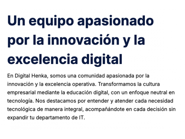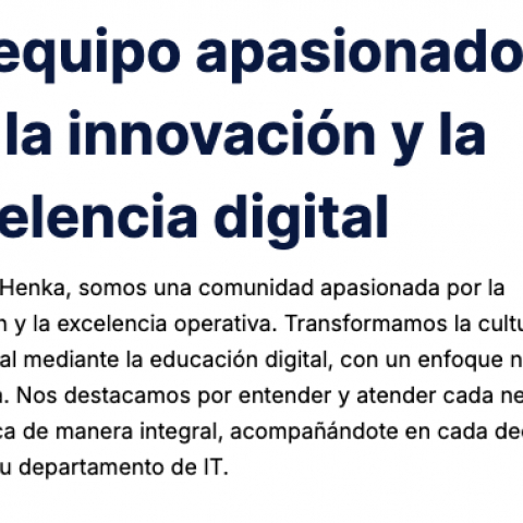 En Henka ayudamos a empresas no tecnológicas a resolver sus problemas de negocio. Lo hacemos de forma agnóstica, integrándonos como parte de los equipos de nuestros clientes, y sin acuerdos que nos aten a proveedores específicos. De esta forma somos libres de recomendar e implementar las mejores soluciones para nuestros clientes, ayudándolos a implementar cambios en procesos y tecnología.